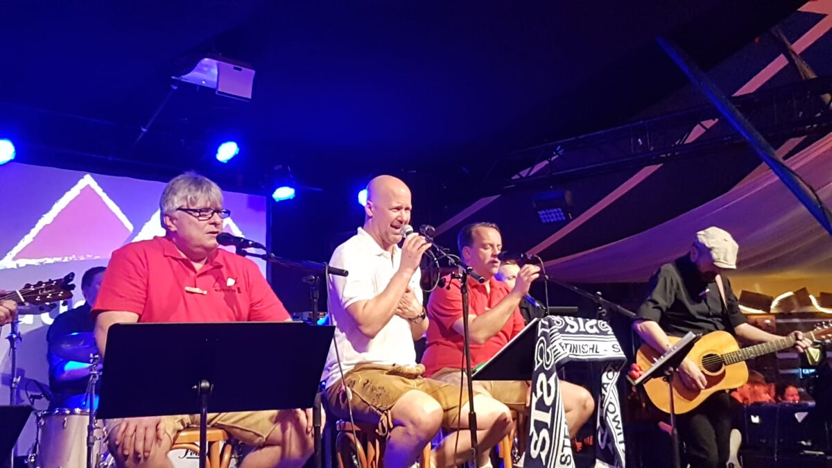 Nach wochen- ja monatelangen Vorbereitungen (Lied-Auswahl, Noten rausschreiben, Stimmenverteilung, (Technik-) Proben ohne Ende, usw.) war es im Nov. 2014 im Gutmann-Haus endlich soweit: der erste Auftritt war der Startschuss zu zahlreichen Wiederholungen, zum Teil mit neuen Arrangenments aus einem unerschöpflichen Liedergut, die sich auch in Zukunft weiter fortführen lassen können. Auch in ein paar Jahren noch, zumindest ist dies meine (und auch die von mittlerweile zahlreichen einheimischen und „auswärtigen“ Fans) große Hoffnung der deutsch-österreichischen Freundschaft …