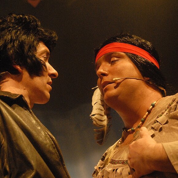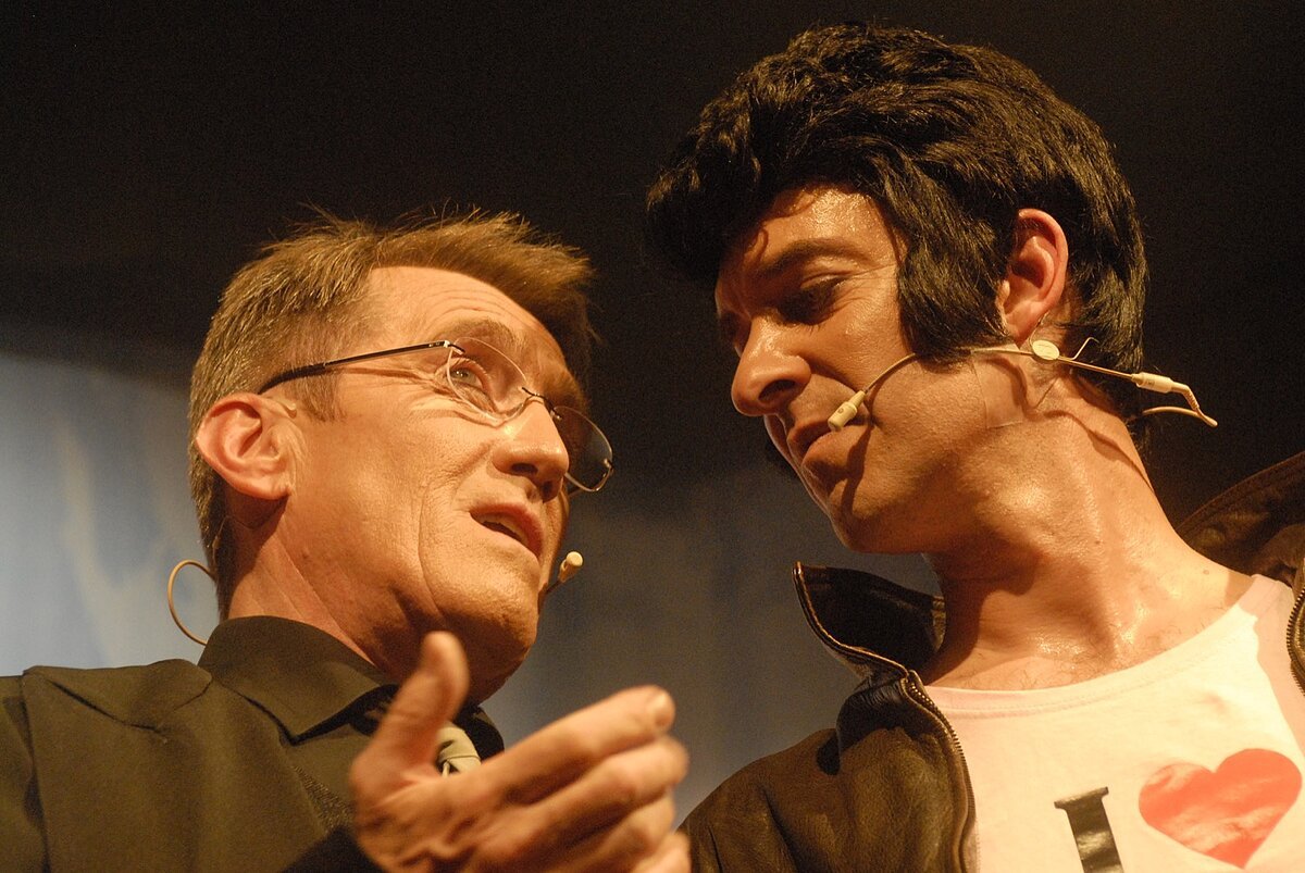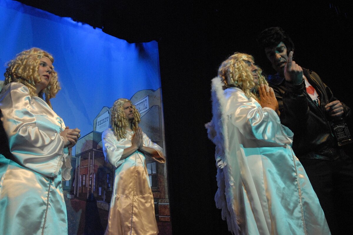 Denn im MuT-Musical „Viva Las Vegas“ aus der Feder von Sisi Wein und mit der unsterblichen Musik von Elvis Presley bekommt letzterer gehörig Ärger mit seinen himmlischen Mitbewohnern, die ihn daraufhin auf die Erde zurückschicken – aber nicht, wie von ihm gewünscht, nach „Las Vegas, sondern in die heruntergekommene Westernstadt „Little Vegas“. Plötzlich befindet sich der King in Gesellschaft der schrulligen Westernstadt-Bewohner und bringt deren Leben und Hormone kräftig durcheinander. Dabei entdeckt so mancher von ihnen mehr Elvis in sich, als er sich jemals vorstellen konnte…